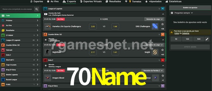 A aposta 70Name oferece aos jogadores a experiência mais conveniente de apostas em eSports!